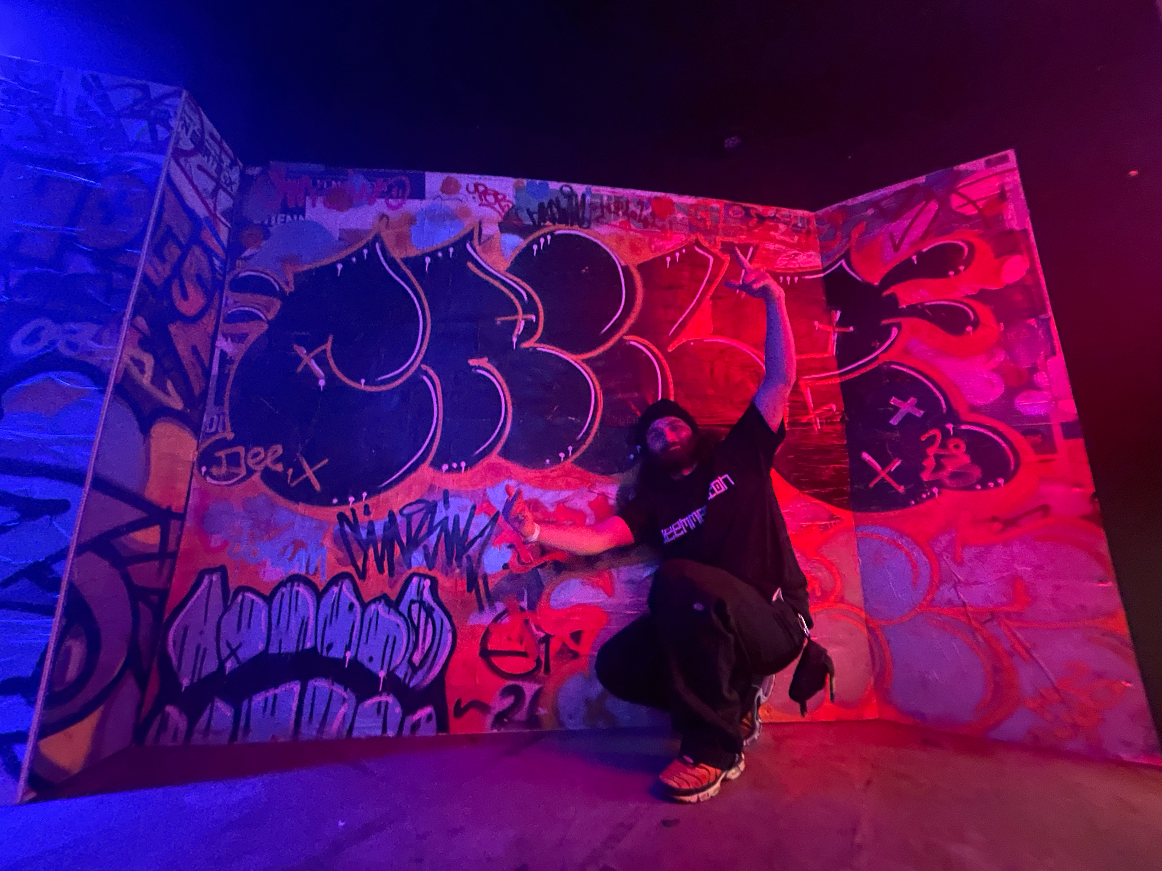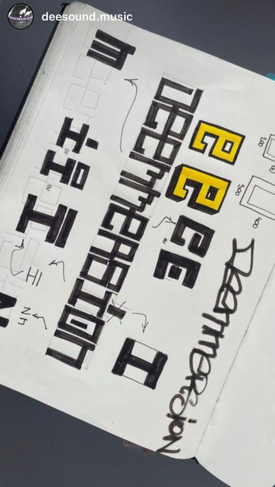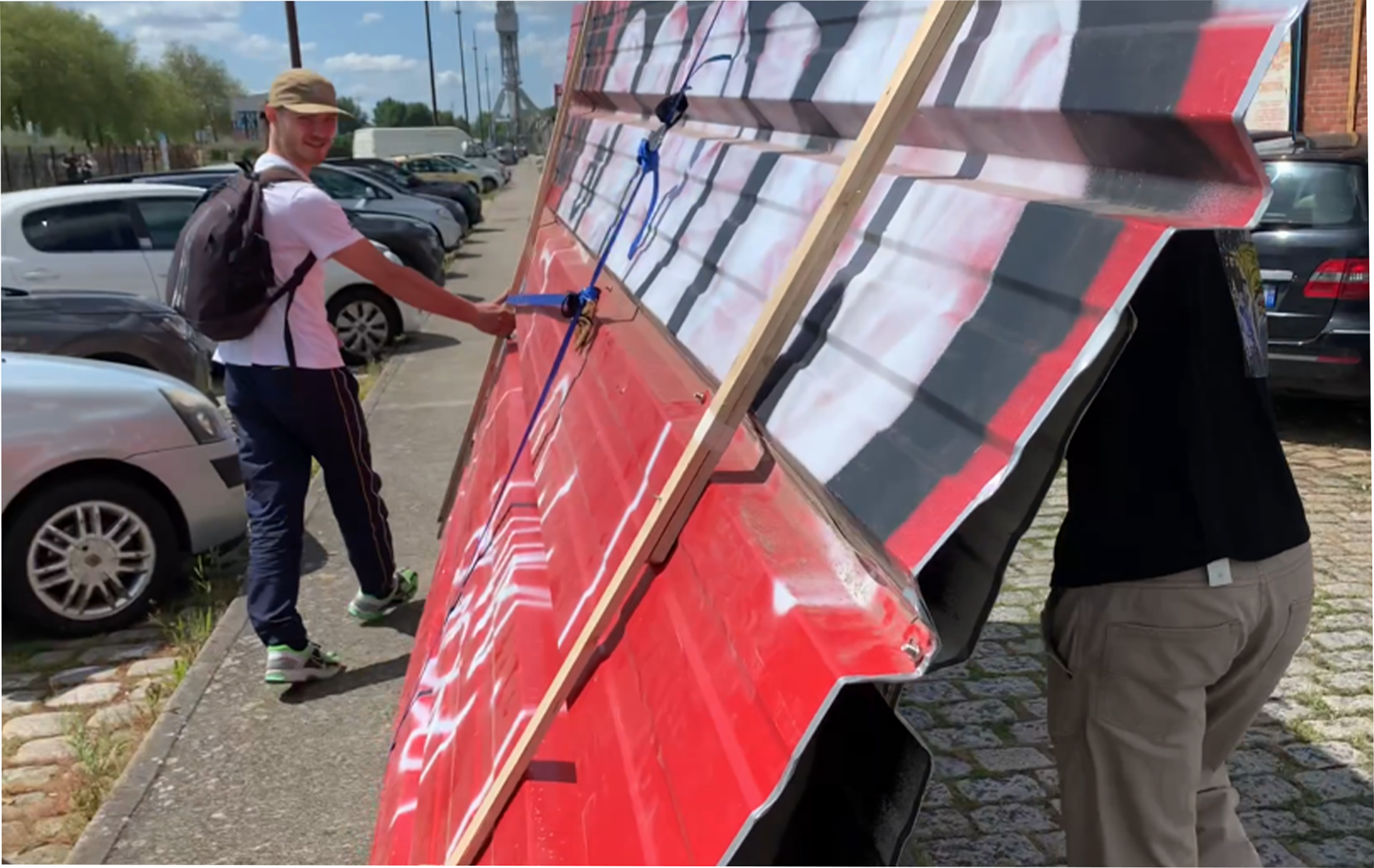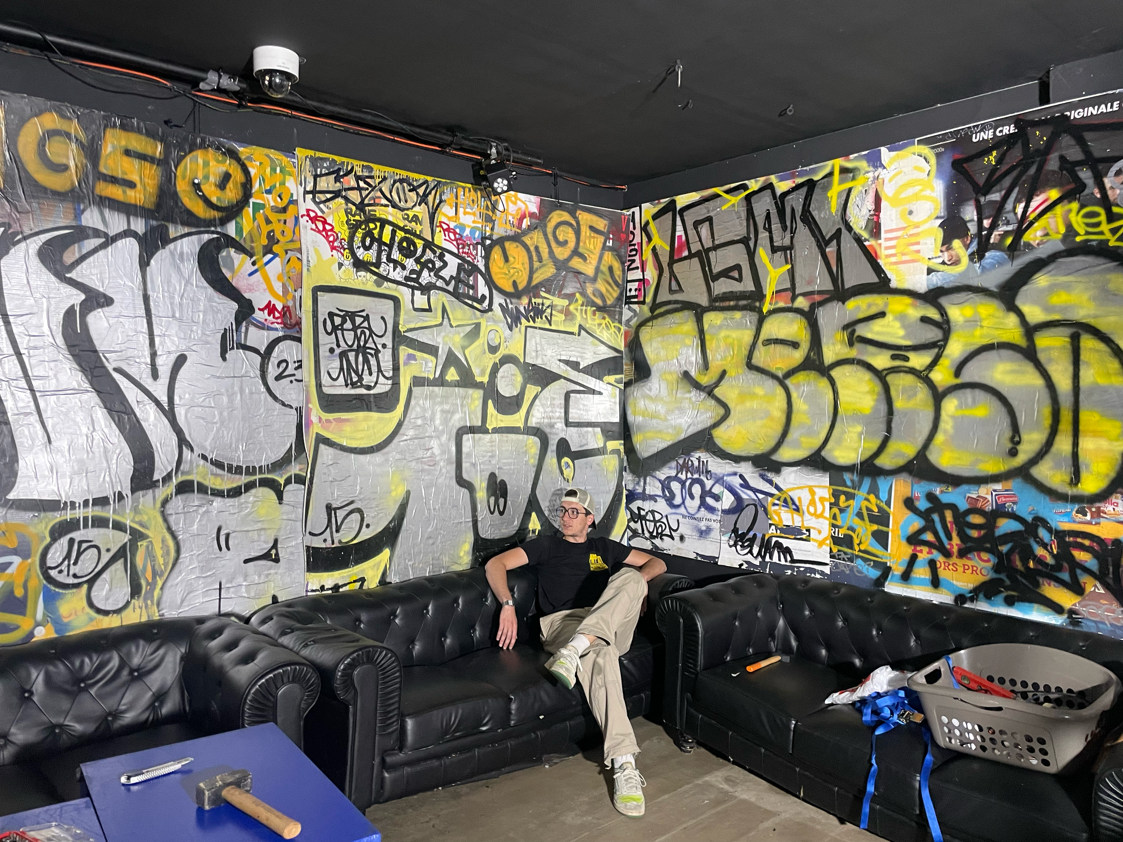 - Collaboration avec une quinzaine de graffeur pour recouvrir des panneaux pvc (récupérés) avec leur blaze. Code couleur : chrome, jaune, noir.