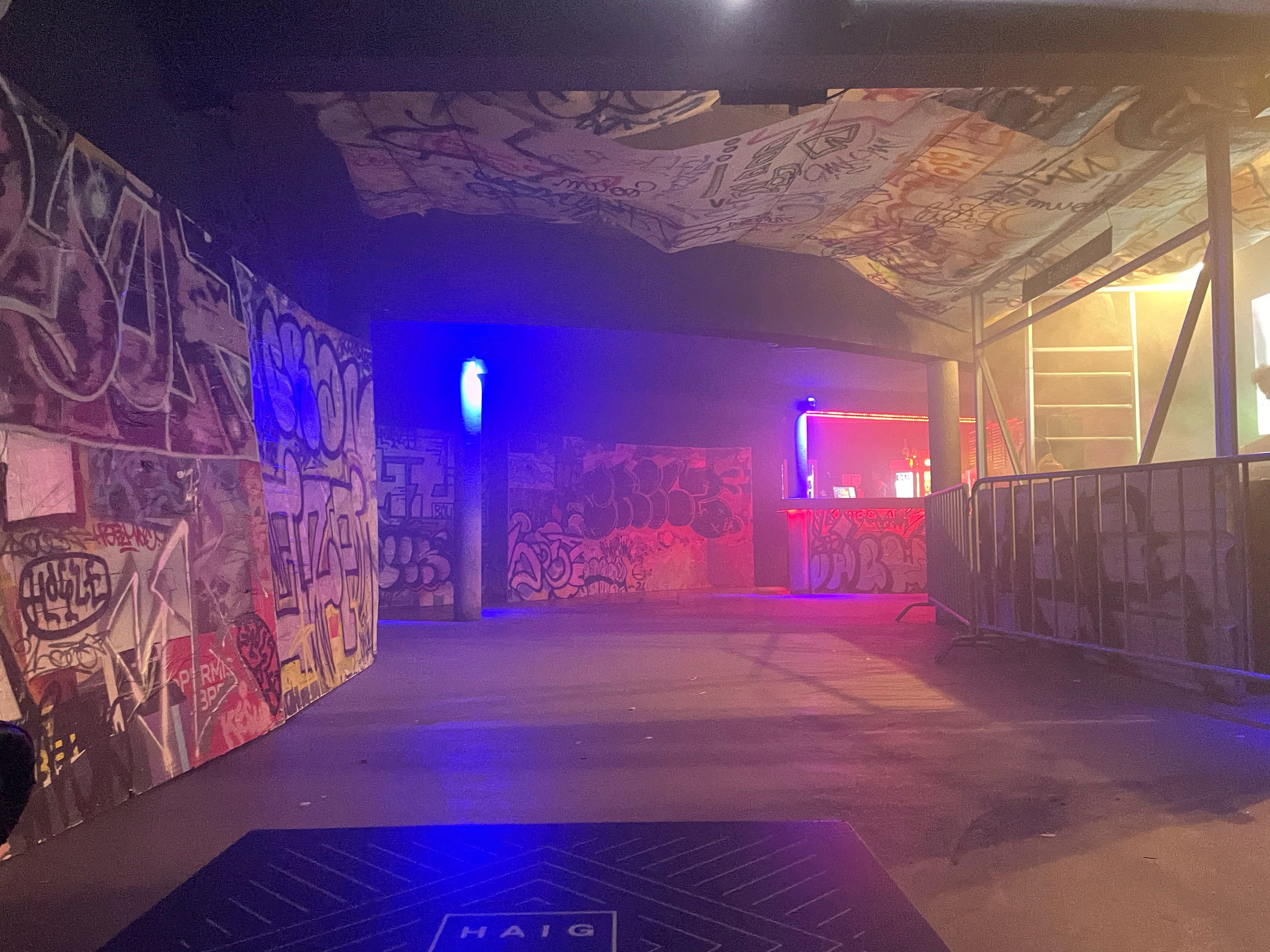 - Production d’un échafaudage pour entourer le Dj booth et évoquer la présence d’un arrêt de bus