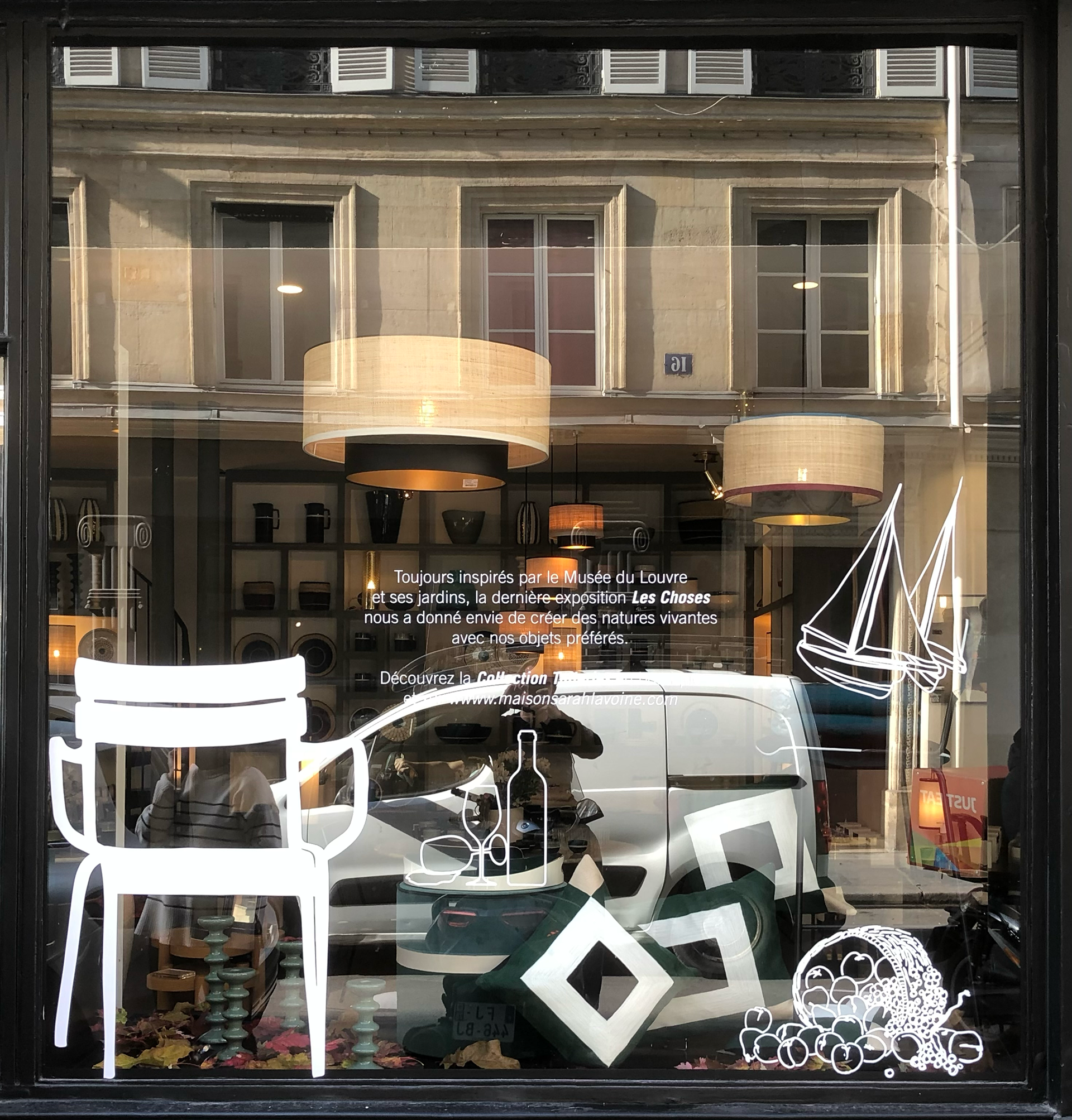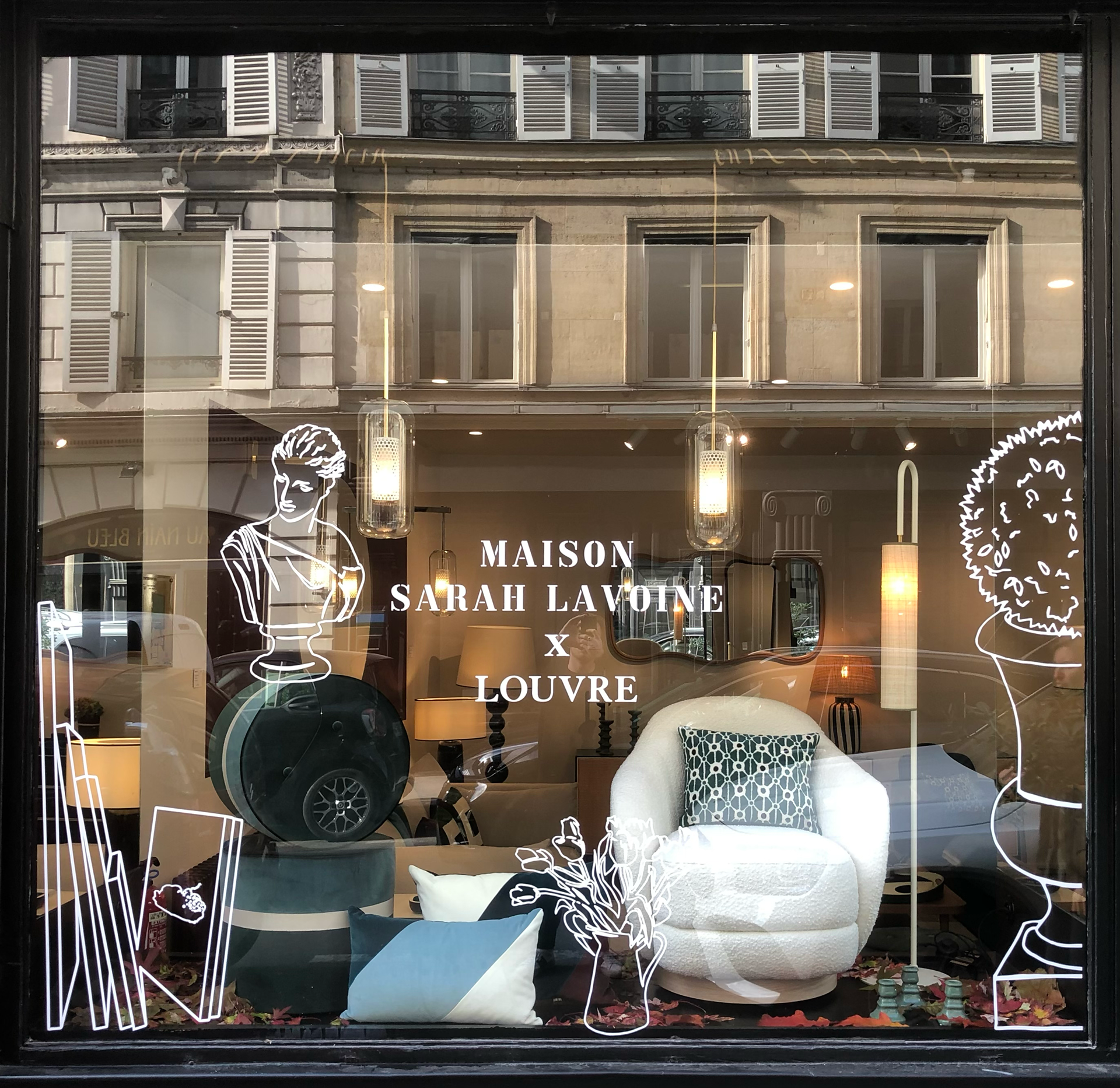 J’ai opté pour une composition désordonnée contrastant avec l’ADN de Maison Sarah Lavoine, intégrant des illustrations d’objets iconiques du Louvre, d’un atelier d’artiste et de natures mortes classiques. Dessinées à la main, elles ont aussi servi à la communication de la collection.